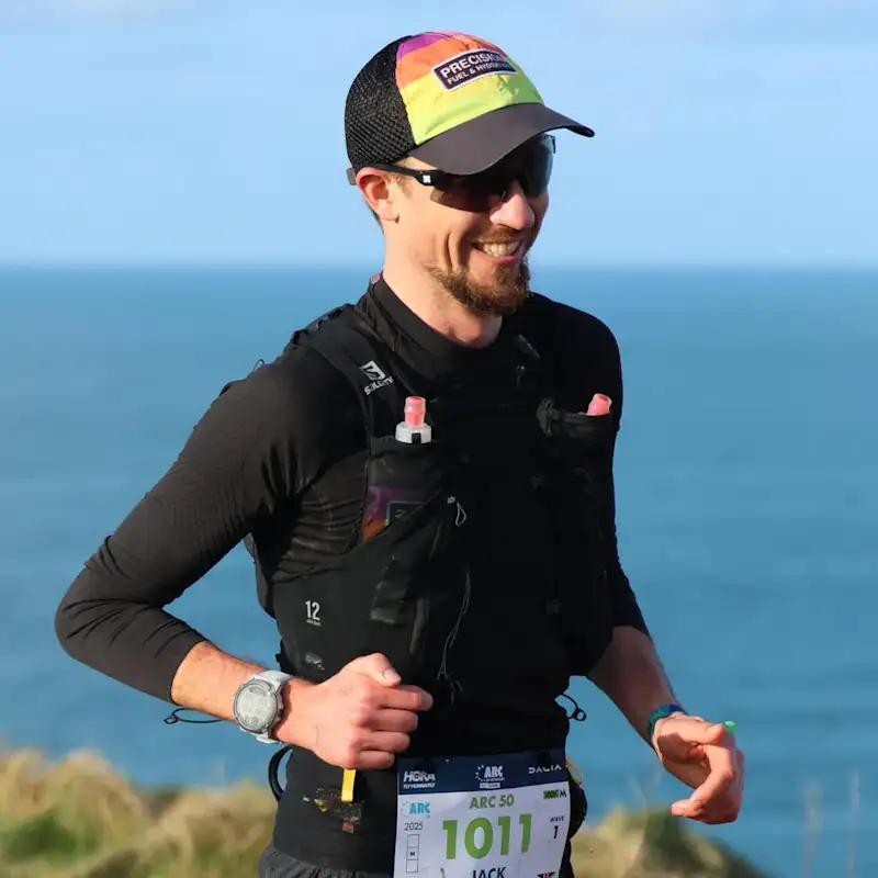 Jack meticulously planned his fueling strategy to the gram based on forecasted split times which meant that he could carry exactly the amount of carbs he needed to make it to each aid station. He predominantly relied on 18 PF 90 Gels as his main source of fuel during this gruelling 100-mile race, enjoying the simplicity of throwing back one PF 90 Gel per hour along with some additional carbs to top up from PF Carb & Electrolyte Drink Mix, cola and ‘real food’, ultimately achieving just over 100g/h. At times, Jack deviated from this strategy to avoid GI discomfort by only using cola, and as he reduced his carb intake slightly, he felt better. This gave his stomach the break it needed and enabled him to bring his intake back up to his planned levels successfully, where he has been regularly gut training at race intensities.