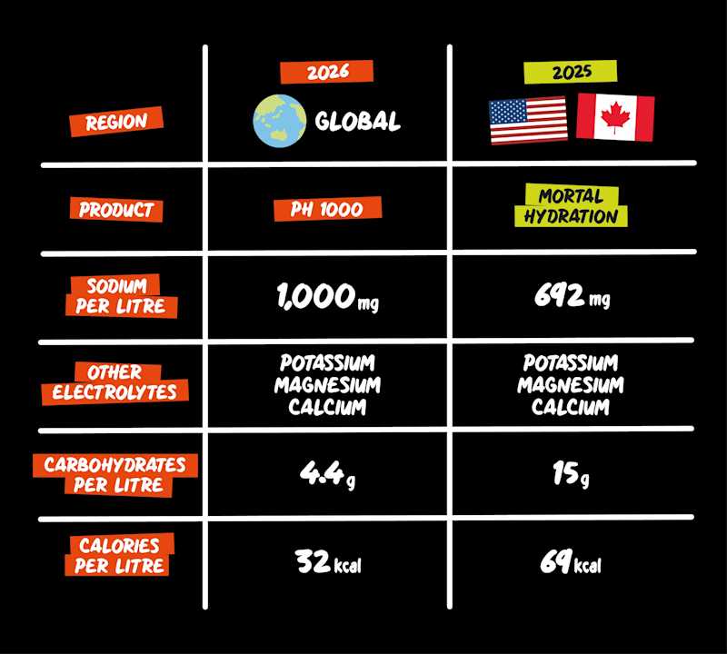 - PH 1000 electrolyte drink on-course globally