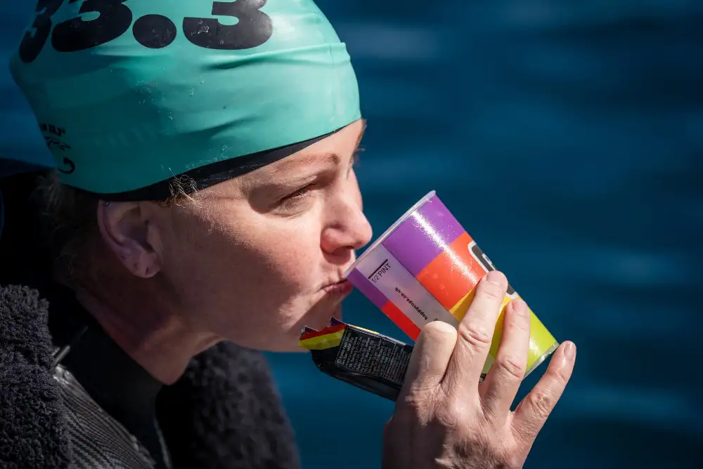 If you're swimming with crewed support, ask for warm drinks in insulated bottles or flasks. Even in tepid water, slightly warm carbs and electrolytes can reduce gut stress and keep your stomach happier on longer swims. Just test this in training as some people prefer room temperature feeds over anything ‘hot’.